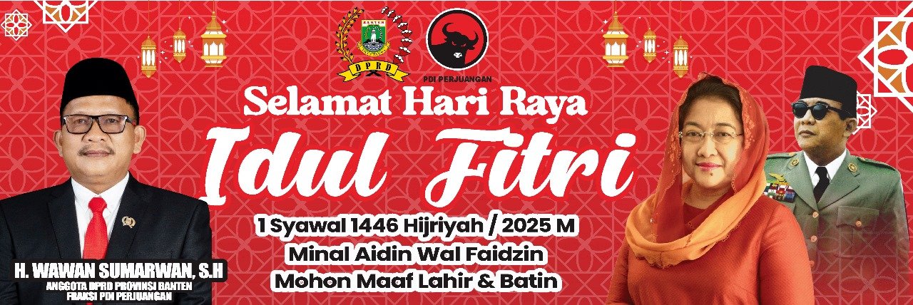Mandala Nusantara News H. Wawan Sumarwan SH, Anggota DPRD Provinsi Banten, Fraksi PDI- P, dan segenap pengurus PDI-Perjuangan Mengucapkan Selamat Hari Raya Idul Fitri 1446 H. Minal Aidin Wal Faidzin, Mohon Maaf Lahir dan Batin.