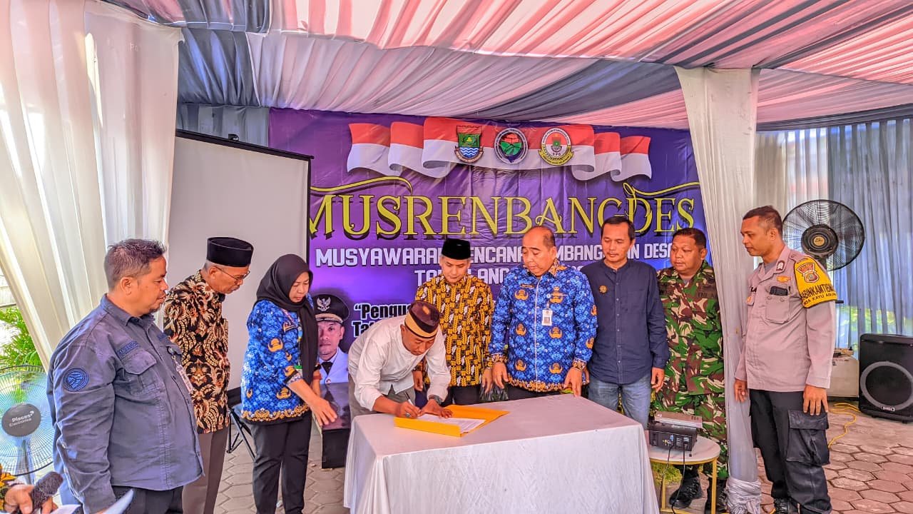 “Untuk diketahui bersama, Musrenbangdes yang dilakukan ini, merupakan wadah Musyawarah Agenda Tahunan, untuk menyiapkan rencana prioritas Tahun 2026, sehingga Kepala Desa termasuk seluruh lembaga dan Tokoh Masyarakat yang hadir dipersilakan untuk melaksanakan Musyawarah bersama-sama melalui Forum Musrenbangdes ini,” ungkapnya.