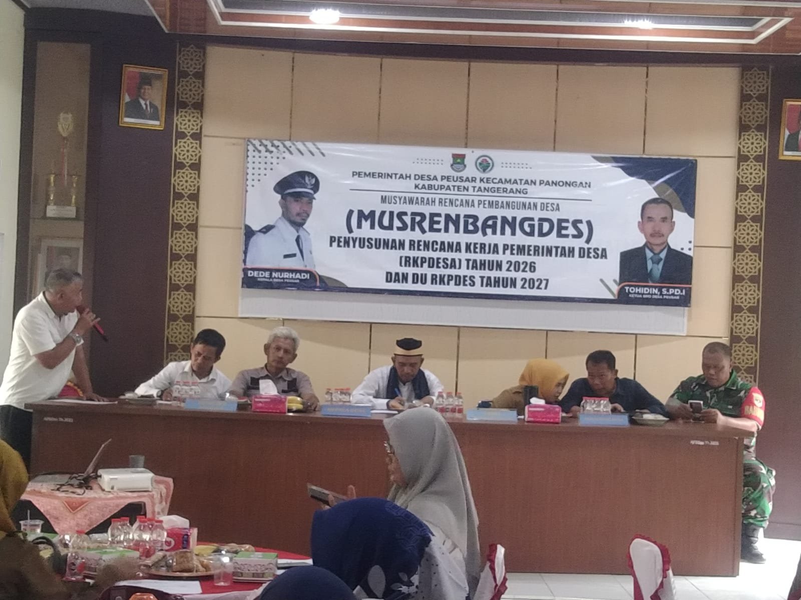 Babinsa Koramil 14/Panongan Desa Peusar Serma Heru dan Serka Sudartono menghadiri kegiatan Musyawarah Rencana Pembangunan Desa (Musrenbangdes) dalam rangka penyusunan Rencana Kerja Pemerintah Desa (RKPDes) Tahun 2026 serta Daftar Usulan RKPDes (DU-RKPDes) Tahun 2027 yang dilaksanakan di Aula Kantor Desa Peusar, Kecamatan Panongan, Kabupaten Tangerang, pada Senin, 13/10/2025