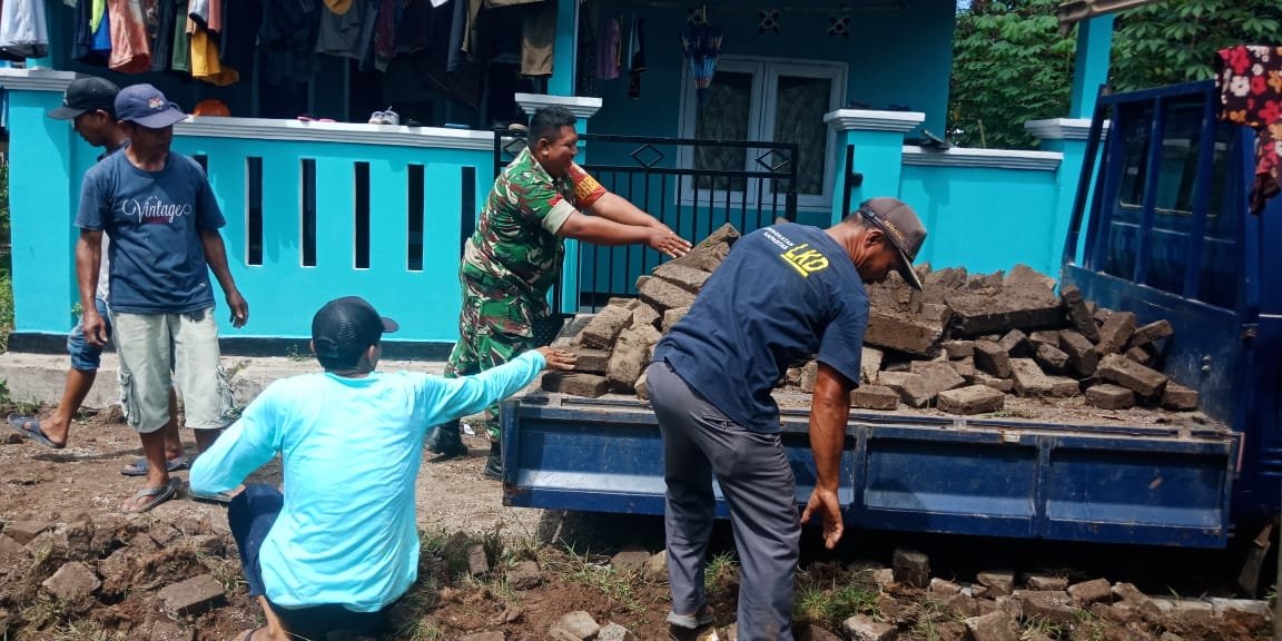 Warga pun menyambut baik kegiatan tersebut. Mereka bahu-membahu bersama Babinsa dalam memperbaiki jalan yang sebelumnya berlubang dan tergenang saat hujan.