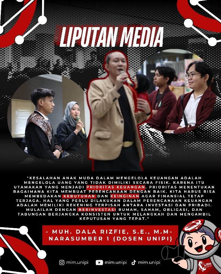 ” Bukan hanya harus bisa mengatur finansial, tetapi kita juga harus bisa mengukur kemampuan kita dan Kita harus bisa mengatur keuangan sesuai kebutuhan dan tidak mengikuti gengsi,” Kata Dr. Istajib Kulla Himmy’Azz, SST., M.M selaku Wakil Rektor III, dalam penyampaiannya dihadapan para mahasiswa yang hadir, Selasa (20/5/2025).