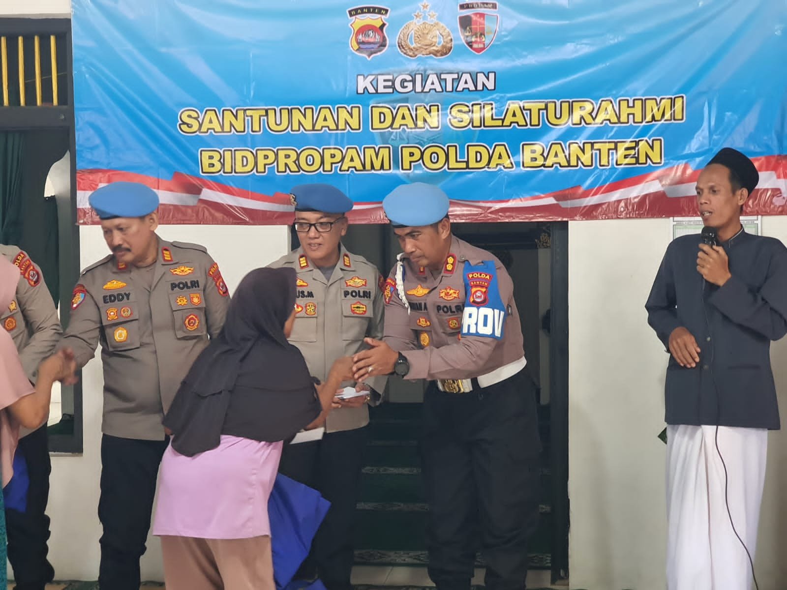 Hadir dalam kegiatan tersebut Kasubbidprovos Bidpropam Polda Banten, Personel Urbinpam Subbidpaminal Bidpropam, Personel Subbidwabprof Bidpropam Polda Banten, Personil Subbidprovos Bid propam Polda Banten, Ketua DKM Masjid Al- Azhab Link Pulojajar Banjarsari, Ketua RT Pulojajar Banjarsari, Tokoh masyarakat, Tokoh agama, Ibu-ibu Janda (yang ditinggal meninggal suami) Link Pulojajar, Anak-anak yatim/piatu Link Pulojajar Banjarsari.