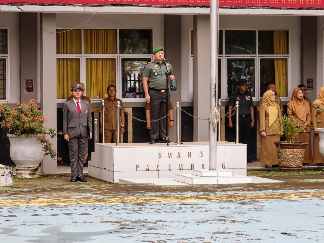Sementara itu Kepala Sekolah Drs. Sugiyono, MM mengapresiasi Dandim 0418/Palembang yang telah bersedia menjadi pembina upacara di SMA N 3 Palembang , di jelaskan Dandim dalam amanatnya berpesan bahwa siswa siswi merupakan generasi penerus bangsa yang mempunyai masa depan yang masih panjang dan untuk itu ayo menggapai cita cita Mulya di masa depan yang lebih cerah.