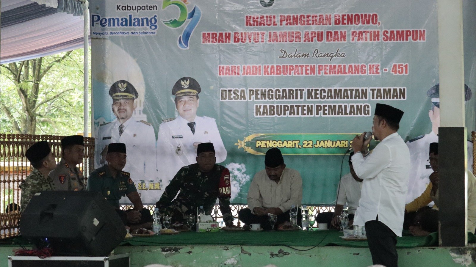 Turut hadir dalam kegiatan tersebut Bupati Pemalang Anom Widiyantoro, S.E., M.M., Ketua DPRD Kabupaten Pemalang Drs. Martono, S.IP., Danlanal Tegal Letkol Laut (P) Tato Taufikqurohman, Dansatradar 403 Tegal Letkol Lek Indra Febrian Nugraha, Kapolres Pemalang AKBP Rendy Setia Permana, S.I.K., S.H., M.M., Kepala Kejaksaan Negeri Pemalang Ibu Rina Idawani, S.H., Wakil Kepala Pengadilan Agama Kabupaten Pemalang H. Fahmi, R., S.Ag., M.H.I., Asisten Pemerintahan dan Kesra Drs. Tutuko Raharjo, M.Si., Ketua TP PKK Kabupaten Pemalang dr. Noor Faizah Maenofie, M.Kes., seluruh kepala OPD Kabupaten Pemalang, Muspika Kecamatan Taman, Kepala Desa Penggarit Imam Wibowo, para kepala desa se-Kecamatan Taman, para kiai dan ulama, panitia haul, serta tamu undangan lainnya.