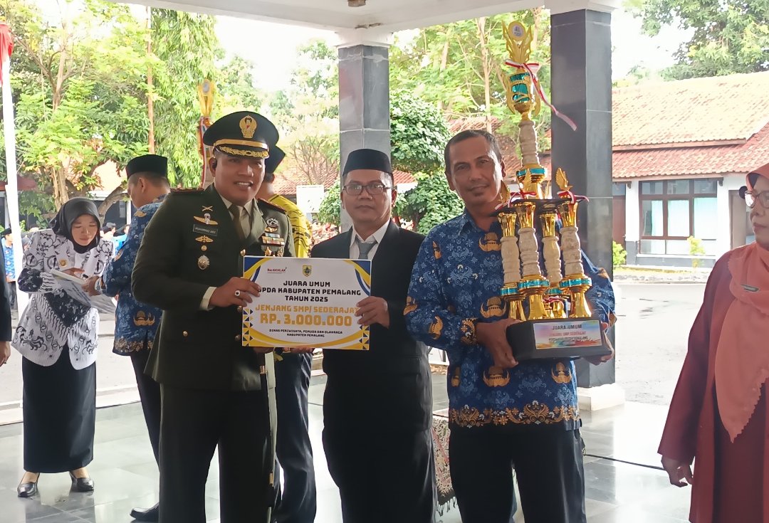 Sebagai penutup rangkaian kegiatan, dilakukan penyerahan penghargaan kepada para juara umum Pekan Olahraga Pelajar Daerah (POPDA) Kabupaten Pemalang Tahun 2025 tingkat SD, SMP, dan SMA oleh Wakil Bupati Pemalang.