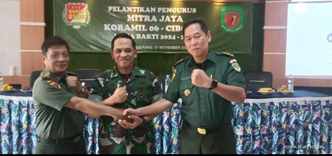 Mandala Nusantara News, Tangerang. Komandan Rayon Militer ( Koramil ) 06/Cibodas, melantik Ketua Mitra Jaya, Koramil 06/Cibodas yang baru, masa bakti 2024-2027 yang dilaksanakan di aula kantor Kecamatan Cibodas, Kota Tangerang, pada Kamis, 21 November 2024, yang berlangsung hidmat dan sukses.