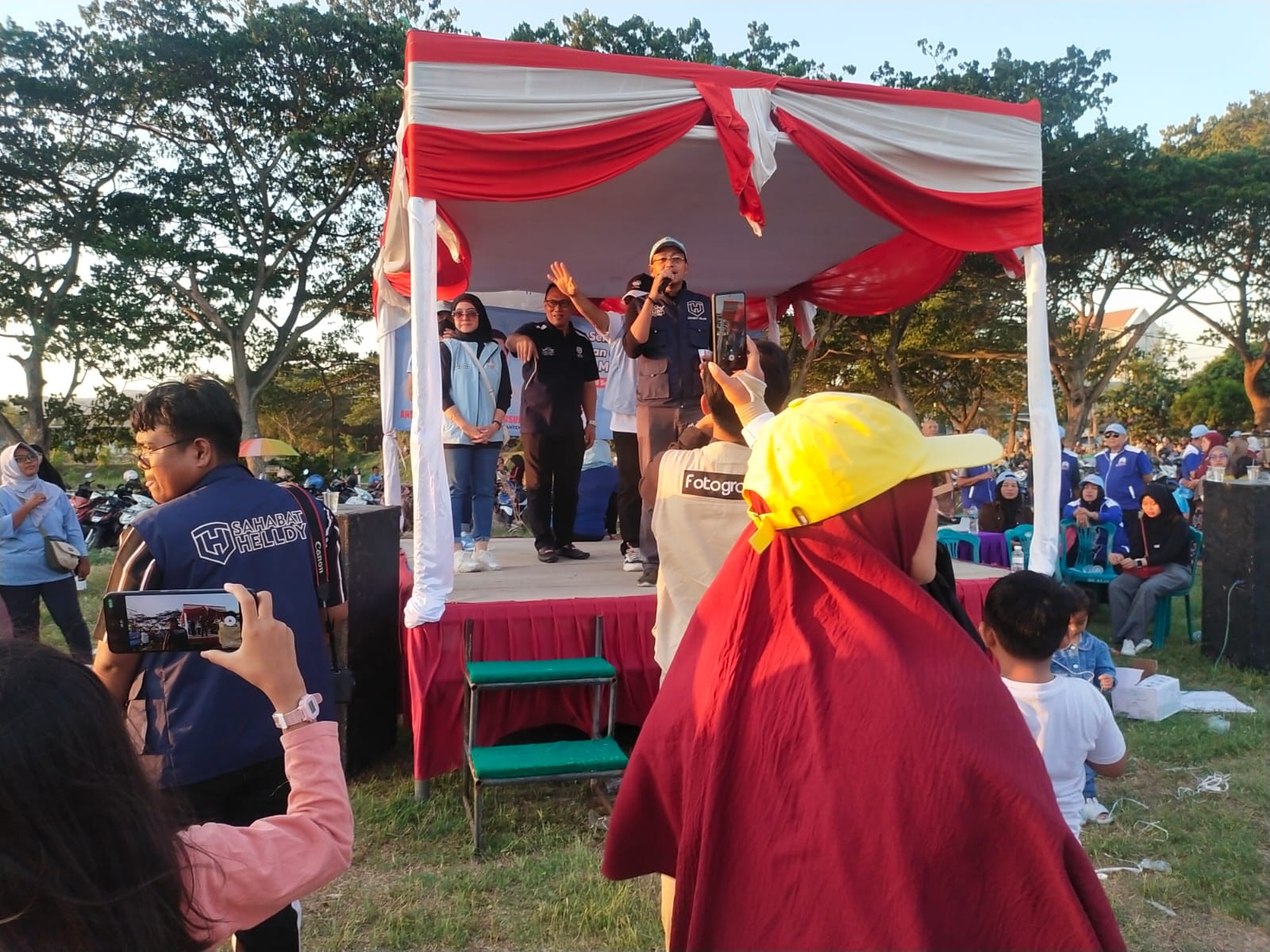 mandalanusantaranews.co.id, Cilegon – Deni Juweni ketua umum LSM BMPP mendampingi Helldy Agustian calon wali kota cilgon no urut. 02 mengadakan senam sehat cek kesehatan gratis dan tebus murah sembako, di serbu ratusan masyarakat di lapangan bola metro, Sabtu 26/10/2024.