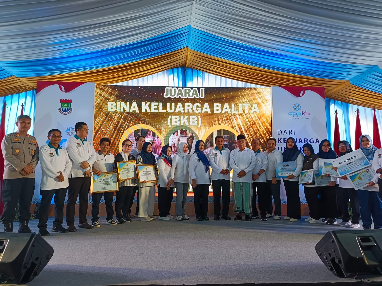 Penghargaan tersebut diberikan langsung oleh Bupati Tangerang Maesyal Rasyid yang hadir dalam Acara Harganas Ke-32 di Alun-alun Pemkab Tangerang