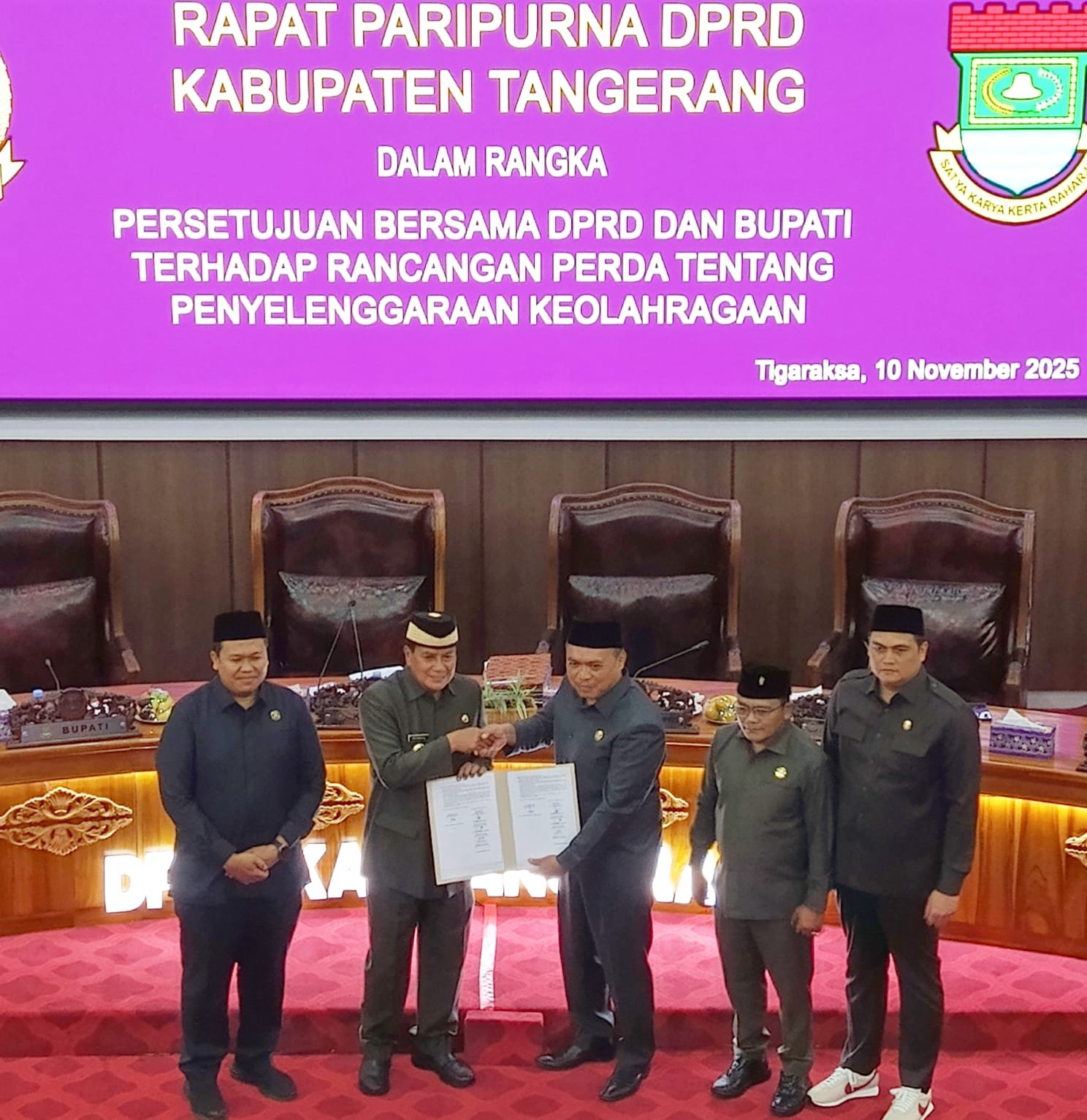 Mandala Nusantara News Tangerang, – Seluruh anggota Fraksi DPRD kabupaten Tangerang, dari berbagai partai menyetujui Rancangan Peraturan Daerah (Raperda) tentang Penyelenggaraan Keolahragaan. Hal itu disampaikan pada saat rapat paripurna DPRD Kabupaten Tangerang. Senin 10 November 2025.