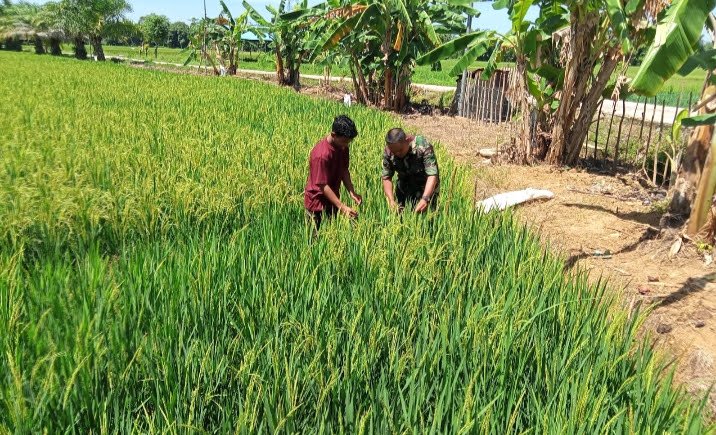 Pada kesempatan itu, Serka Joni Warman bersama petani memantau kondisi pertumbuhan padi sekaligus memastikan tanaman berkembang dengan baik dan terbebas dari gangguan hama maupun penyakit.
