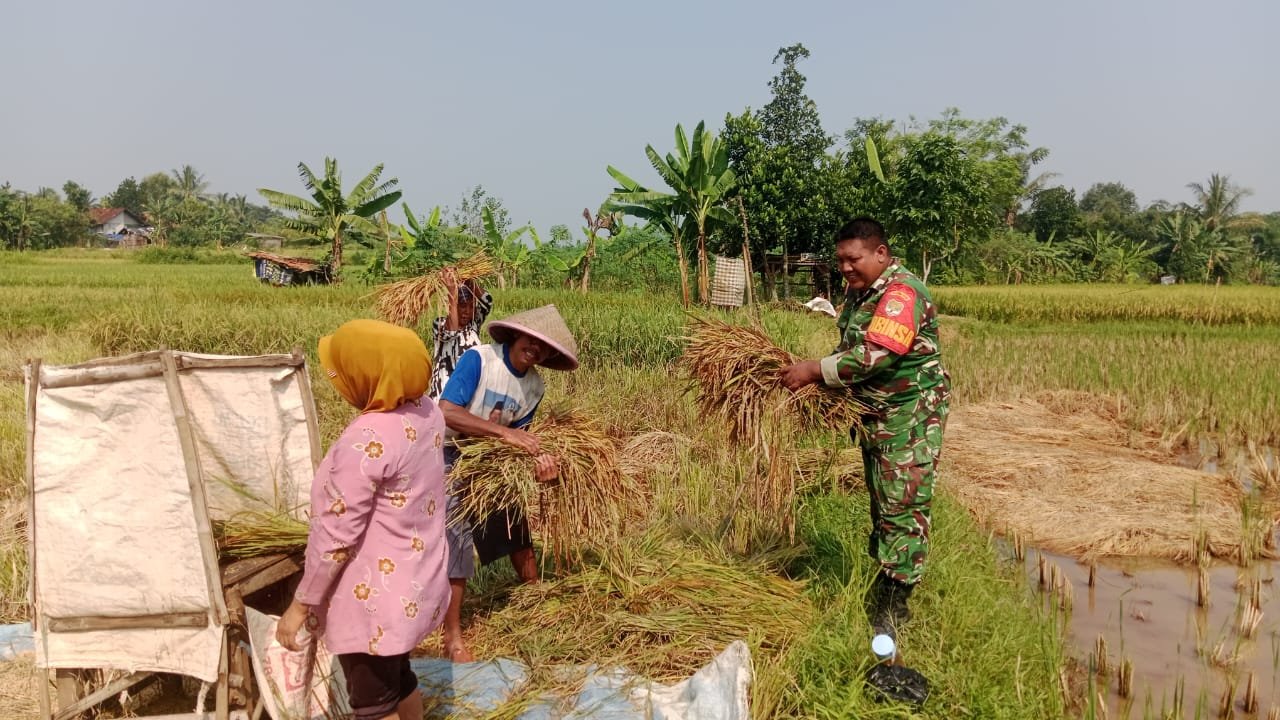 Dukung Program Ketahanan Pangan, Babinsa Koramil 14/Panongan Dampingi Petani Panen Padi