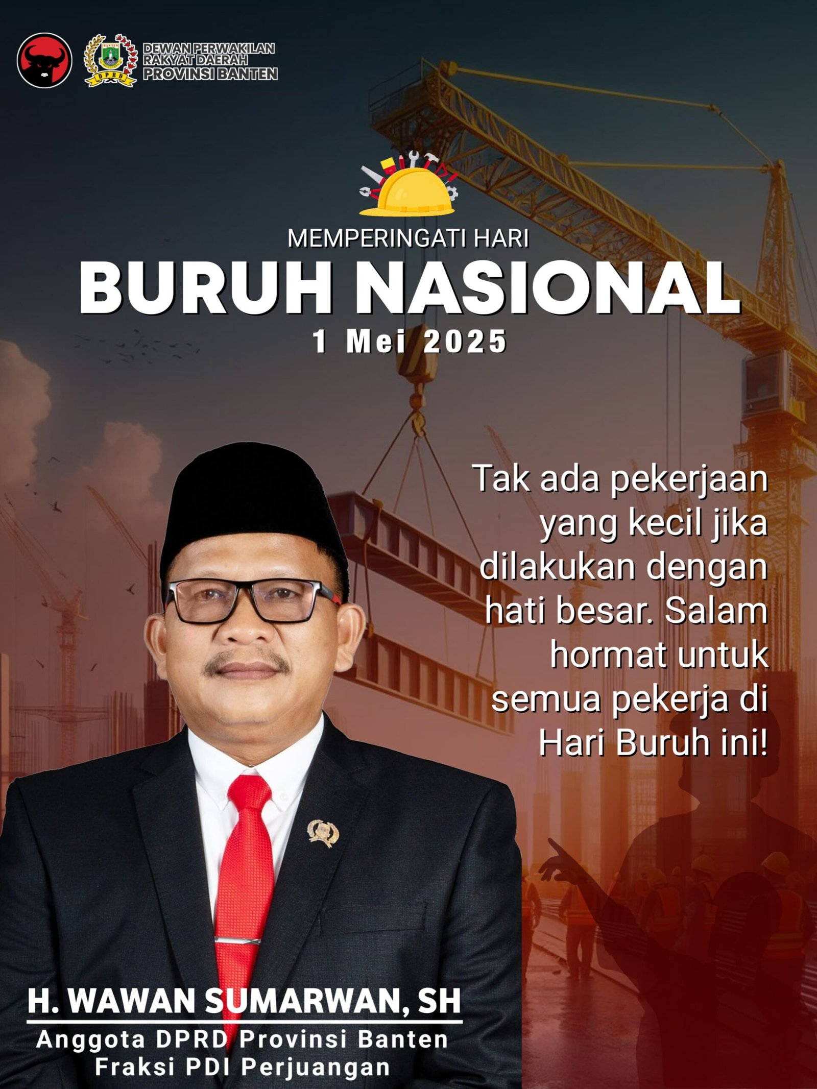 Dalam pesan yang disampaikannya melalui media visual, H. Wawan Sumarwan menuliskan kalimat penuh makna: “Tak ada pekerjaan yang kecil jika dilakukan dengan hati besar. Salam hormat untuk semua pekerja di Hari Buruh ini!”