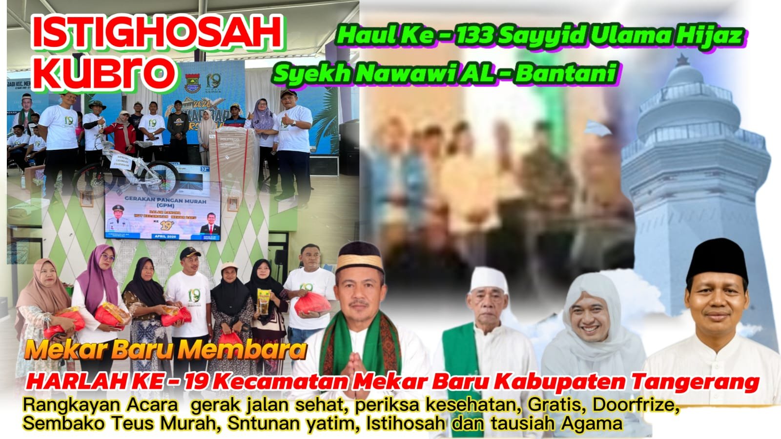 Mandala Nusantara News, Tangerang, – Peringatan Hari Lahir (Harlah) ke-19 Kecamatan Mekar Baru, Kabupaten Tangerang, Banten, berlangsung meriah dan penuh khidmat. Kegiatan tersebut dirangkaikan dengan Haul ke – 133 ulama besar asal Banten, Syekh Nawawi al-Bantani.