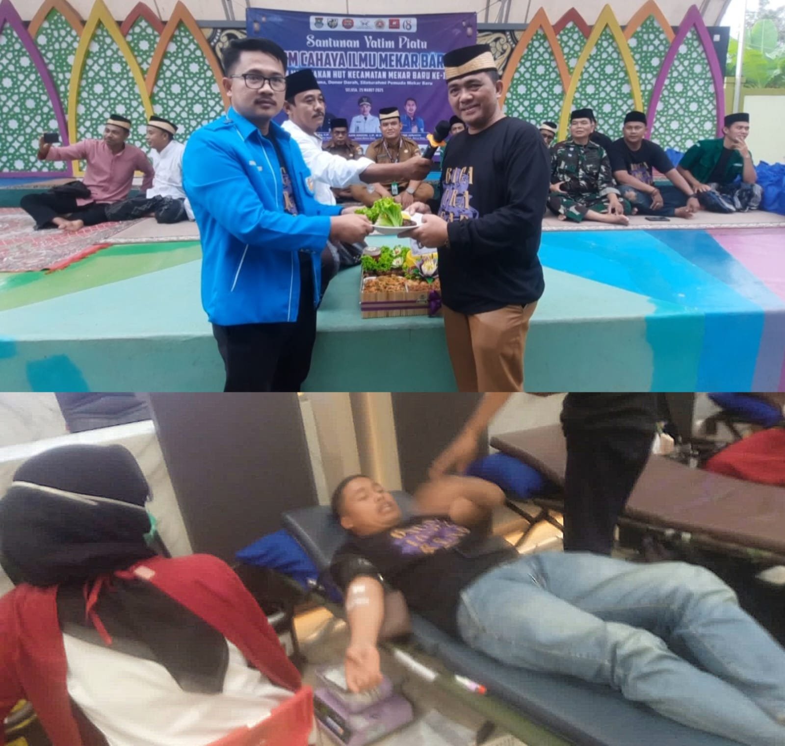 Rangkaian acara tersebut ialah syukuran, potong tumpeng, santunan anak yatim piatu, buka bersama dan donor darah, bertempat di TBM kecamatan Mekar Baru, Selasa 25 Maret 2025.