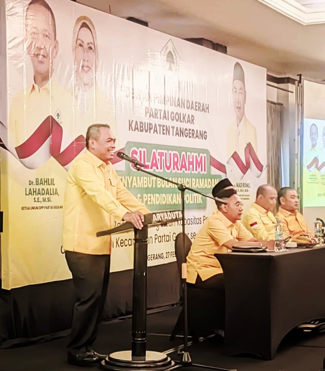 Menyemangati kader Golkar Kabupaten Tangerang.