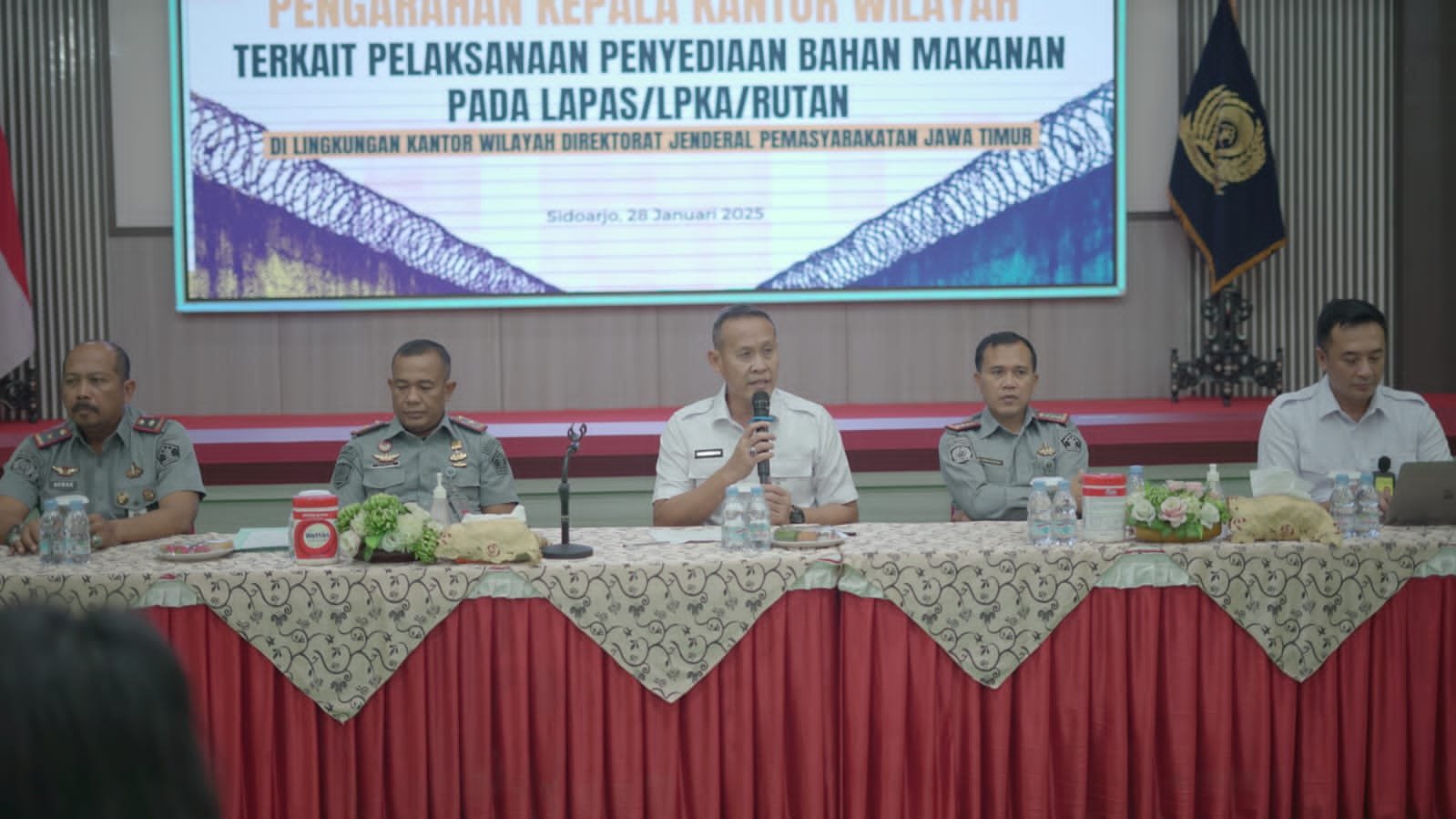 Mandala Nusantara News SURABAYA – Dalam upaya meningkatkan kualitas pelayanan bagi Warga Binaan Pemasyarakatan (WBP), Kantor Wilayah Direktorat Jenderal Pemasyarakatan Jawa Timur menggelar kegiatan pengarahan terkait pelaksanaan penyediaan bahan makanan di Lembaga Pemasyarakatan (Lapas), Lembaga Pembinaan Khusus Anak (LPKA) dan Rumah Tahanan Negara (Rutan), Selasa (28/1). Acara berlangsung di Aula MD Arifin, Lapas Kelas I Surabaya, dengan dihadiri oleh seluruh Kepala Unit Pelaksana Teknis (UPT) Pemasyarakatan dan penyedia bahan makanan se-Jawa Timur.