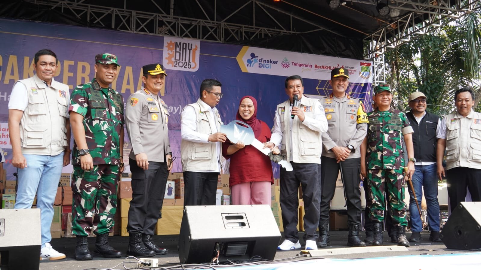 Kapolresta Tangerang Kombes Pol. Baktiar Joko Mujiono, S.I.K., M.M. mendampingi Kapolda Banten Irjen Pol. Suyudi Ario Seto, S.H., S.I.K., M.Si. dalam acara yang bertujuan mempererat solidaritas dan kolaborasi antara pekerja, pengusaha, dan pemerintah. Bupati Tangerang Moch Maesyal Rasyid selaku penanggung jawab acara turut memastikan kelancaran acara yang berlangsung dari pagi hingga sore hari.