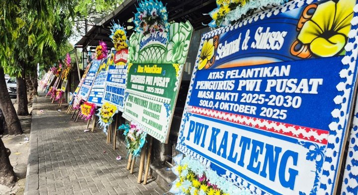 Mandala Nusantara News SOLO – Karangan bunga membanjiri lokasi pelantikan pengurus Persatuan Wartawan Indonesia (PWI) Pusat periode 2025-2030 di Monumen Pers Solo, Jawa Tengah, Sabtu (4/10/2025).