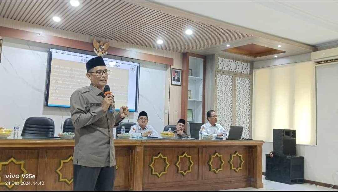 Bertempat di Aula Kemenag Kabupaten Tangerang rapat dihadiri oleh Kepala Madrasah Negeri, Kepala KUA, Kaur TU, Pokjawas, Pokjaluh, Ketua FKUB, Ketua Forum KBIHU, Ketua IGRA, Selasa, 24 Desember 2024.