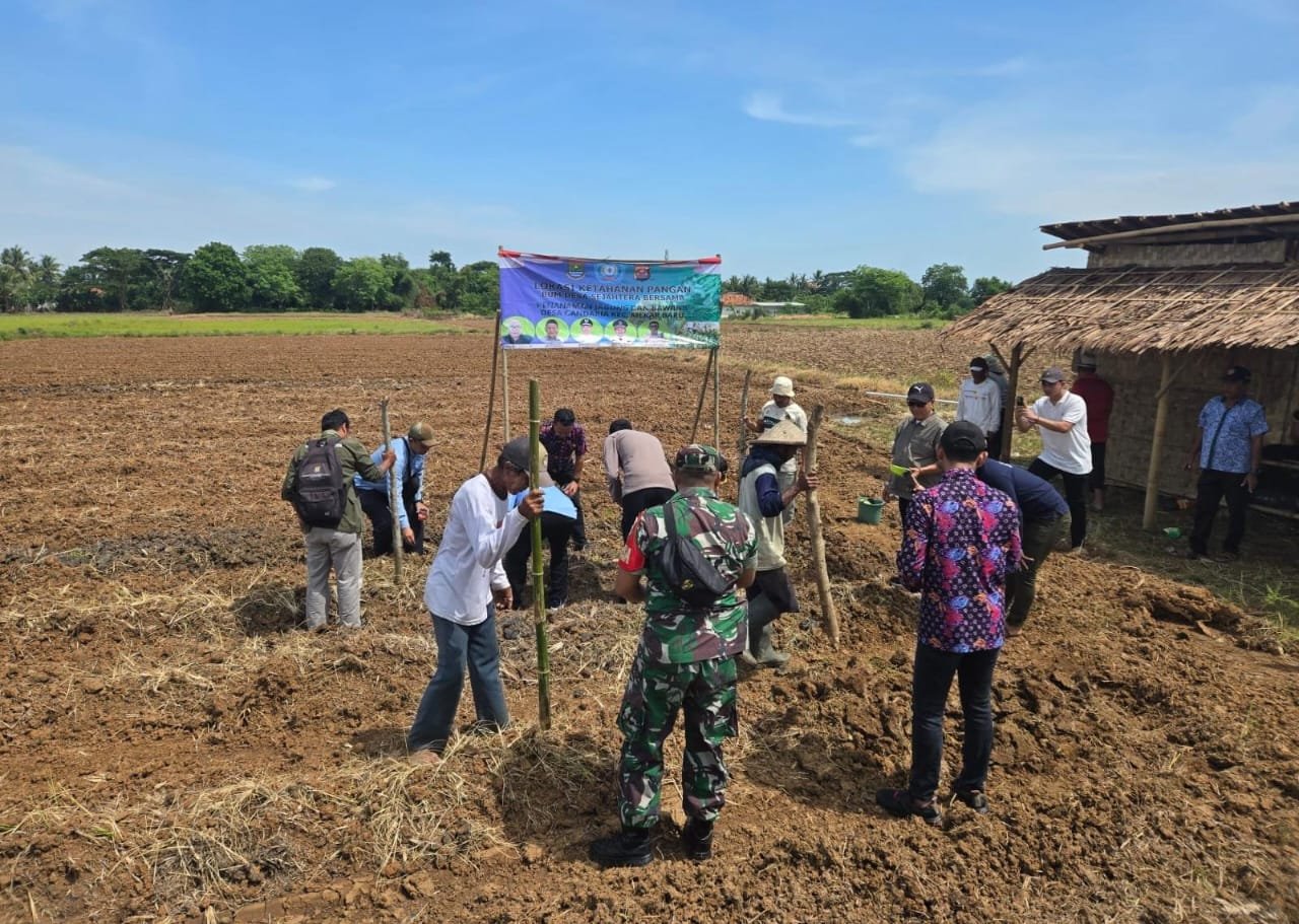 Mandala Nusantara News Kodam Jaya, Tigaraksa – Upaya mewujudkan ketahanan pangan, Babinsa Koramil 08/Kronjo, Kodim 0510/Trs Koptu Mulyono bersama Forkopimcam Mekar Baru membantu petani menanam jagung dan bawang di Desa Gandaria Kecamatan Mekar Baru, Kabupaten Tangerang, Kamis (27/11/2025).