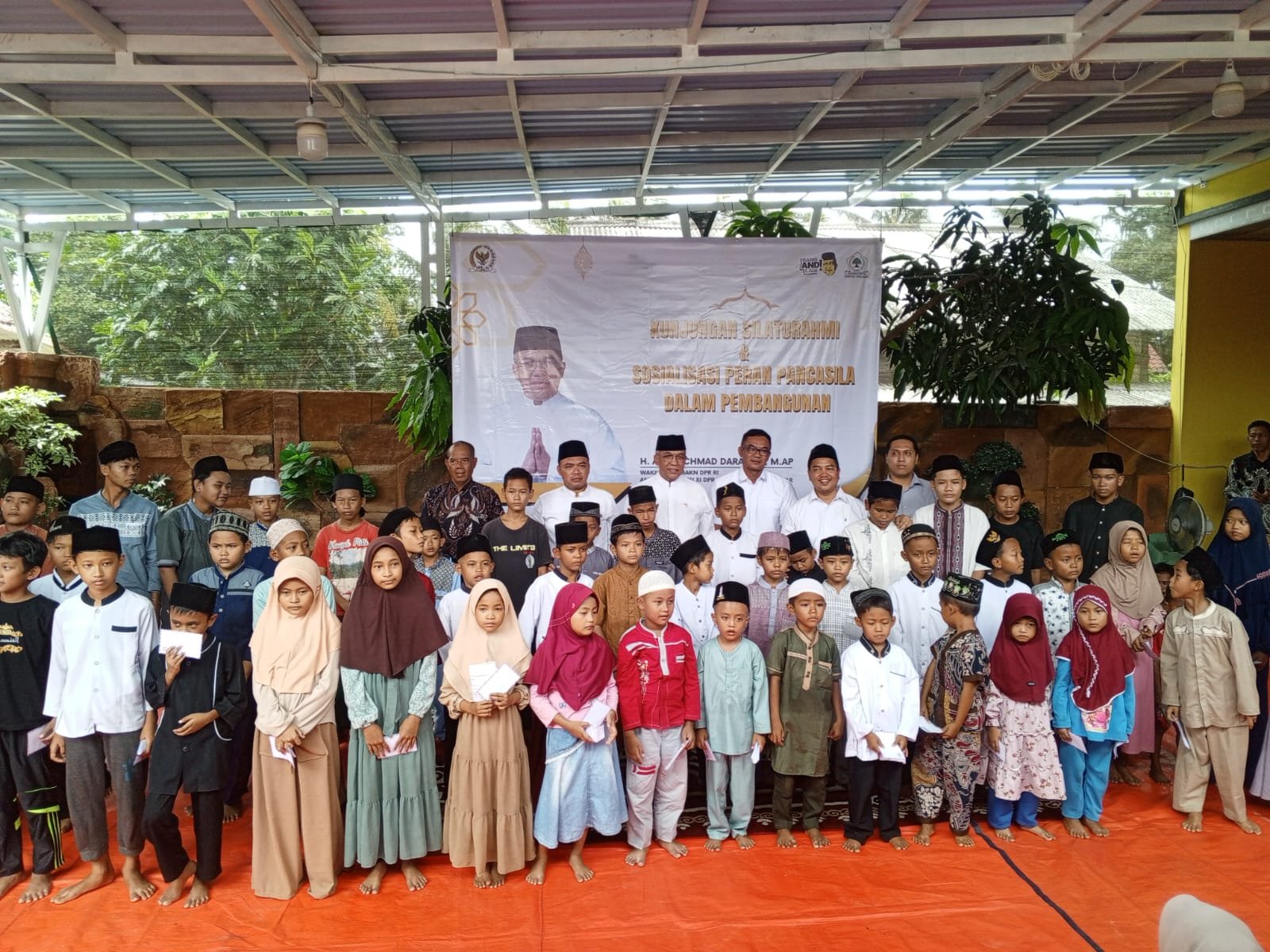 mandalanusantaranews.com TANGERANG — Anggota Komisi XI DPRD RI H. Andi Achmad Dara bersama Ketua DPRD Kabupaten Tangerang Muhamad Amud, memberikan santunan kepada 200 anak yatim piatu dan pendamping di Pondok Aspirasi, Kelurahan Sukatani, Kecamatan Rajeg, Senin (24/3). Pemberian santunan ini sebagai wujud kepedulian dan saling berbagi dalam menyambut Hari Raya Idul Fitri 1446 hijriah.