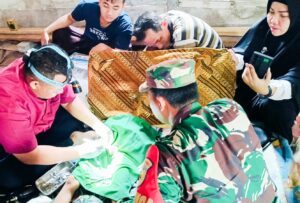 Saat melaksanakan bakti sosial khitan gratis, Serda Fahrur Rozi, di dampingi langsung oleh Kepala Desa Tulungrejo Ibu Erna SH., Petugas Nakes Puskesmas Sumberrejo dan di dukung oleh Rumah Sunat Azby.