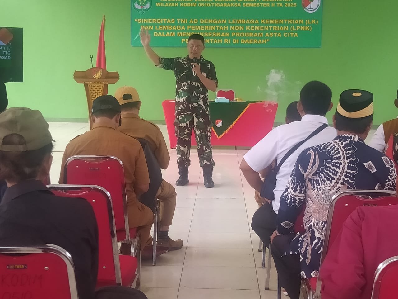 Komandan Kodim 0510/Tigaraksa, Letkol Inf Yudho Setyono, S.H., menegaskan bahwa komunikasi sosial memiliki peran penting dalam membangun kesamaan persepsi dan memperkuat koordinasi antarinstansi. Menurutnya, keberhasilan pembangunan tidak dapat dicapai secara sektoral, melainkan membutuhkan kerja bersama yang solid dan berkesinambungan.