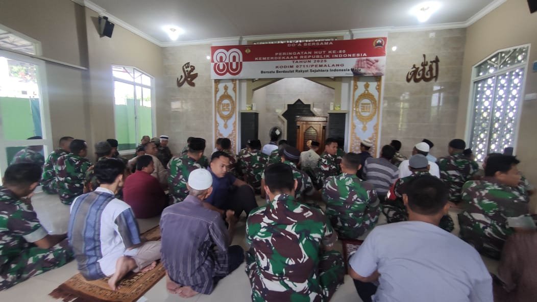 Kegiatan doa bersama ini dipimpin oleh Ustadz Serka Mustofa, diikuti oleh personel Kodim 0711/Pemalang dan masyarakat sekitar. Suasana khidmat dan penuh kekhusyukan mewarnai jalannya acara, sebagai wujud rasa syukur atas nikmat kemerdekaan yang telah diraih bangsa Indonesia.