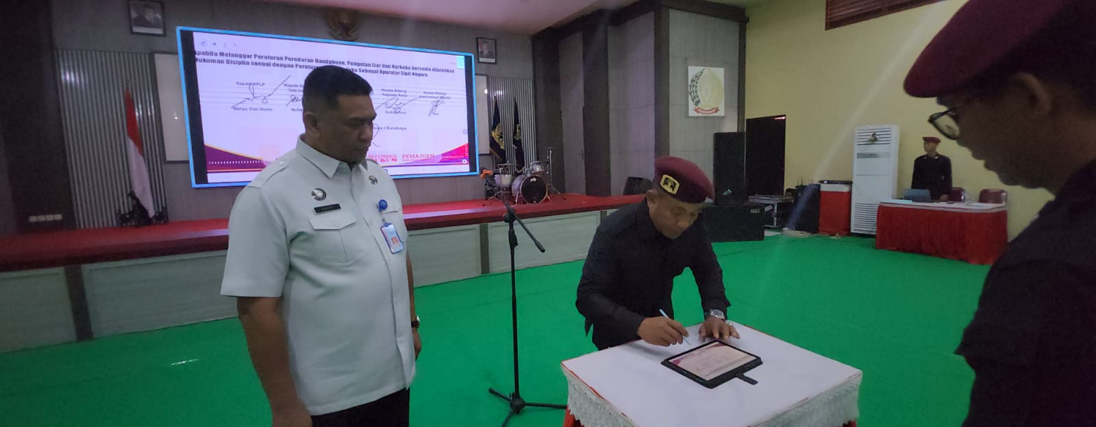 Mandala Nusantara News, Sidoarjo – Pemberantasan Hp, pungli, dan narkoba (Halinar) terus digaungkan oleh Lapas Kelas I Surabaya Kanwil Kemenkumham Jatim, salah satunya dengan melaksanakan apel deklarasi dan penandatangan pakta integritas bersama Badan Narkotika Nasional Kabupaten (BNNK) Sidoarjo yang bertempat di Aula MD Arifin, Lapas Kelas I Surabaya, Rabu (06/11/2024).