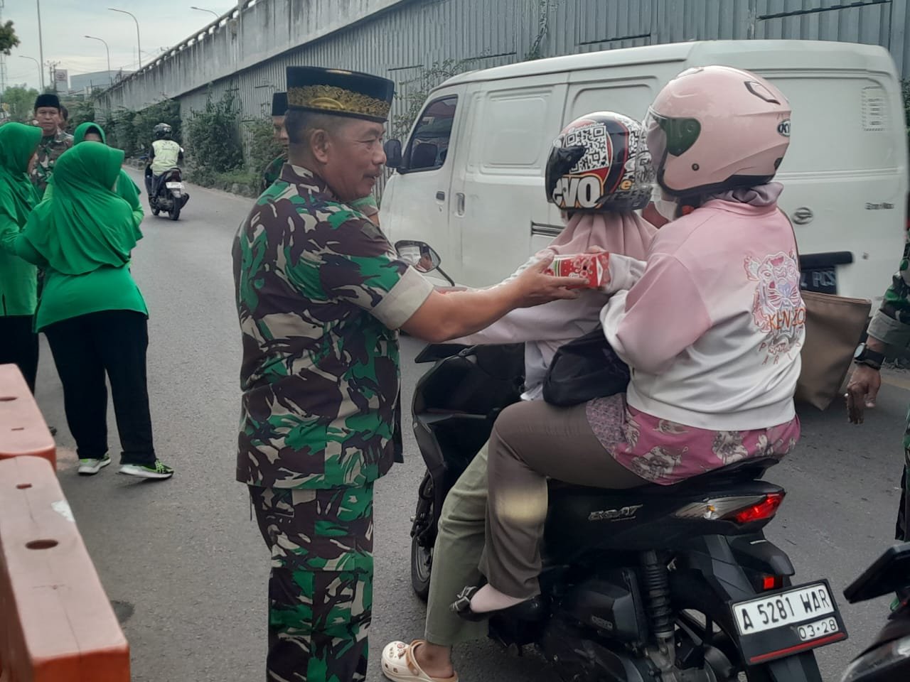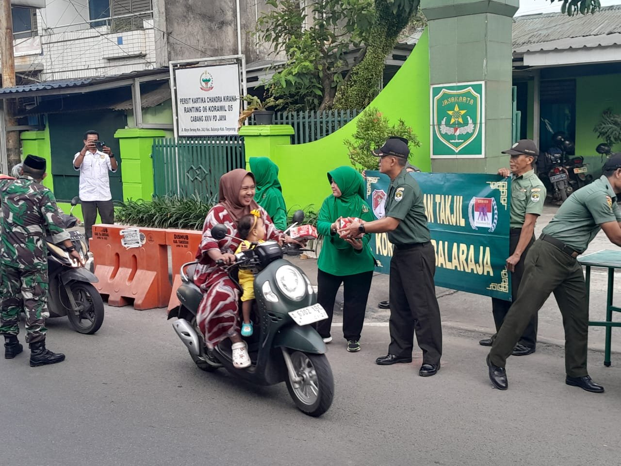 Kegiatan tersebut dipimpin langsung oleh Danramil 05/Balaraja Kapten Infanteri Ali Maskuri S.E M.H bersama anggota Koramil serta Persit KCK Ranting 06 Koramil Balaraja turut membagikan takjil kepada para pengendara dan warga sekitar menjelang waktu berbuka puasa.
