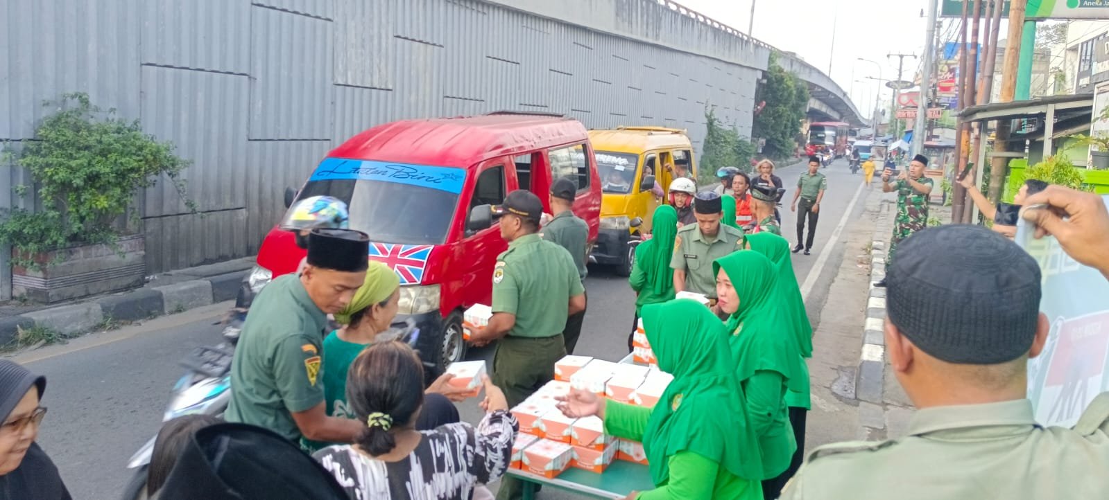 Kegiatan tersebut dipimpin langsung oleh Danramil 05/Balaraja Kapten Infanteri Ali Maskuri S.E M.H bersama anggota Koramil serta Persit KCK Ranting 06 Koramil Balaraja turut membagikan takjil kepada para pengendara yang melintas, warga dan masyarakat sekitar menjelang waktu berbuka puasa.