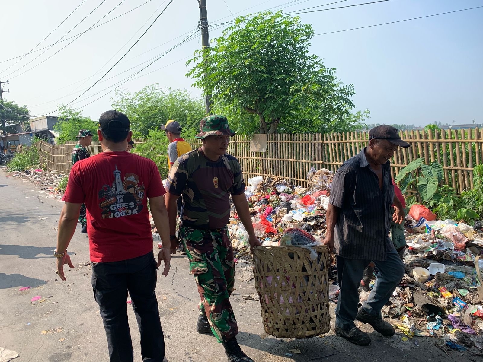 Empat personel Koramil 08/Kronjo dikerahkan dalam aksi bersih lingkungan ini, dibantu empat anggota Polsek Kronjo, sepuluh personel Satpol PP dari Kecamatan Kronjo dan Mekar Baru, serta warga dari dua desa sebanyak 14 orang.