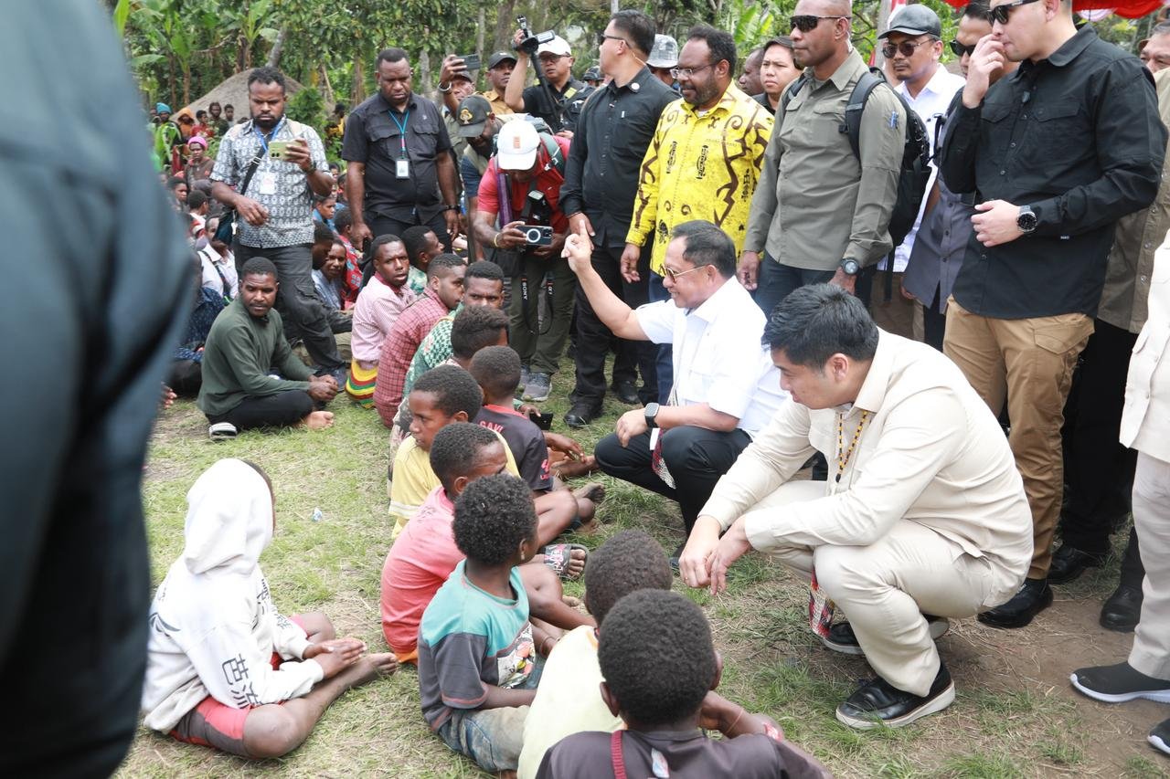 Mandala Nusantara News Wamena – Menteri Dalam Negeri (Mendagri) Muhammad Tito Karnavian bersama Menteri Perumahan dan Kawasan Permukiman (PKP) Maruarar Sirait meninjau lokasi rencana pembangunan rumah di kawasan Sekolah Alkitab Sinakma, Wamena, Kabupaten Jayawijaya, Papua Pegunungan, Selasa (12/8/2025). Dalam kunjungan itu, keduanya menyempatkan diri mengecek langsung kondisi rumah adat Honai milik masyarakat setempat.