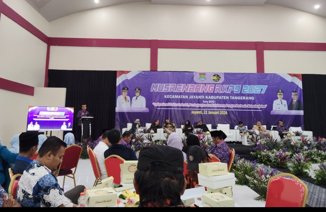 Mandala Nusantara News, Tangerang, Kamis 22, Januari,2026, – Pada hari ini Kecamatan Jayanti menggelar Musyawarah Perencanaan Pembangunan (Musrembang) sebagai langkah awal dalam penyusunan Rencana Kerja Pemerintah Daerah (RKPD) untuk tahun 2027. Kegiatan ini berlangsung di Gedung Serba guna Kecamatan dan dihadiri oleh empat Orang anggota DPRD Kabupaten Tangerang dan satu orang anggota Dprd Provinsi juga dari seluruh Kepala desa se Kecamatan Jayanti termasuk juga perwakilan masyarakat, serta dari unsur Pendidikan dan Puskesmas.