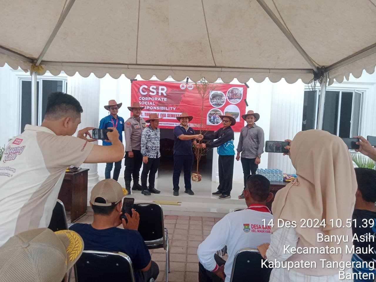 Acara kegiatan penanaman pohon berjalan lancar dengan penuh semangat ,hadir perwakilan dari perusahaan, muspika kecamatan Mauk ,tokoh masyarakat dan tokoh pemuda.