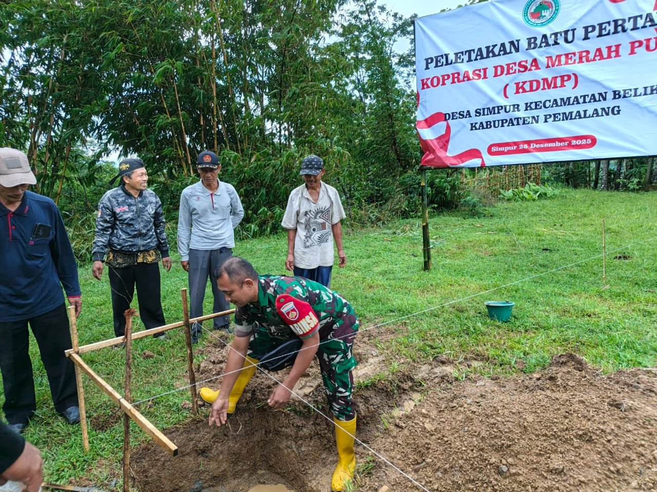 MN News Pemalang – Pemerintah Desa Simpur, Kecamatan Belik, Kabupaten Pemalang, melaksanakan kegiatan peletakan batu pertama pembangunan Koperasi Desa /Kelurahan Merah Putih (KDKMP) Desa Simpur sebagai langkah awal pengembangan sarana ekonomi desa, Kamis (25/12/2025).