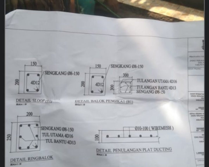 Pembesian tiang kolom utama menggunakan besi ulir diameter 13mm disamakan dengan pembesian tulang kolom bantu yang berdiameter 13mm. Diketahui kegiatan tersebut bersumber dari APBD kabupaten Tangerang melalui Dinas Perumahan, Permukiman dan Pemakaman (Perkim) kabupaten Tangerang.