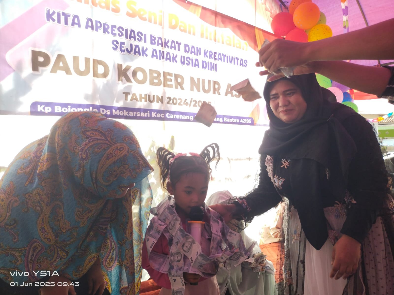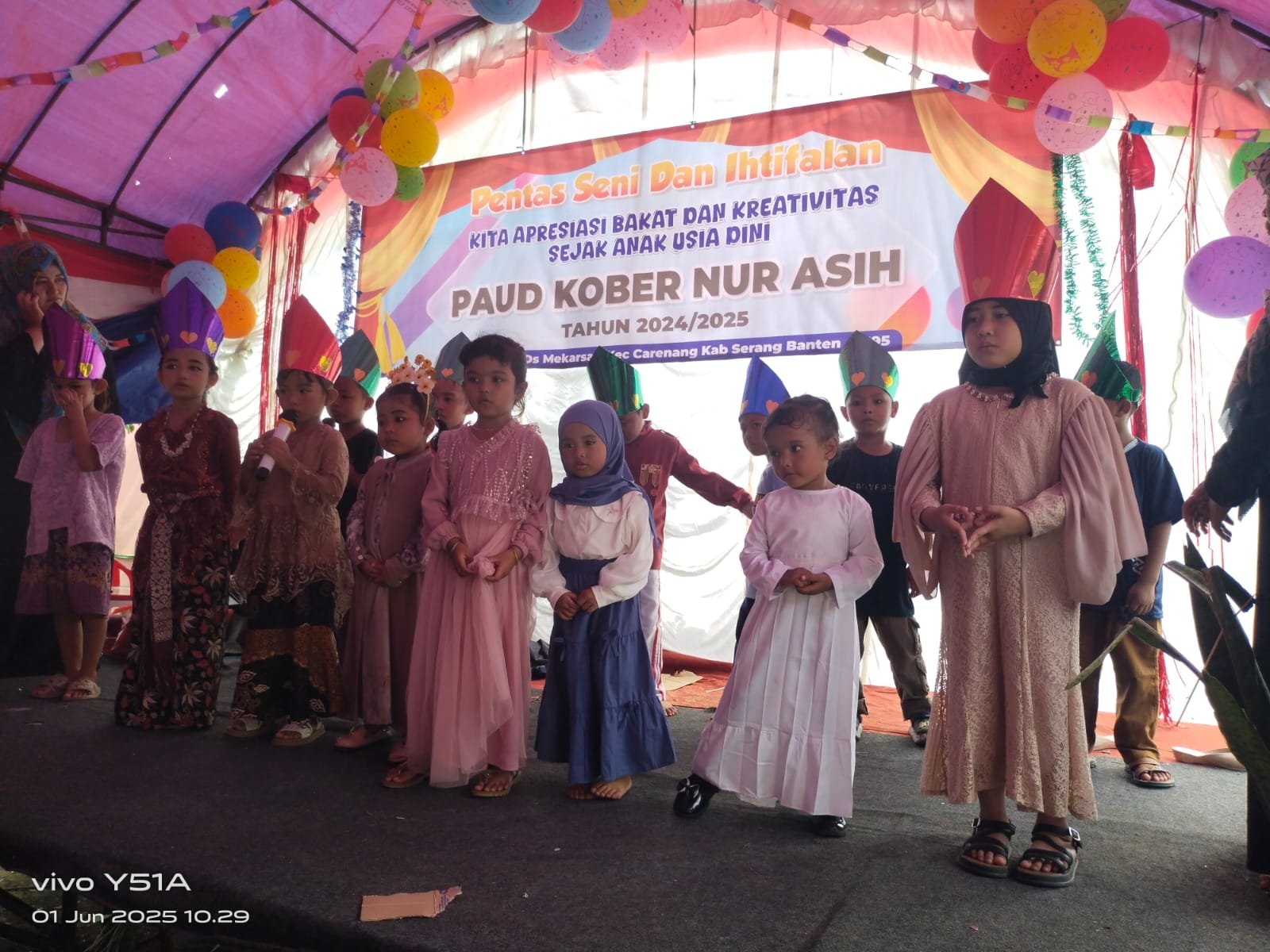 Serang Mandala Nusantara News – Dengan tema kita apresiasi bakat dan kreativitas sejak anak usia dini,” Taman anak-anak Pendidikan Anak Usia Dini “PAUD KOBER NUR ASIH” yang berlokasi di Kampung Bojonglo RT/13 RW/01 Desa Mekarsari, Kecamatan Carenang, Kabupaten Serang, Banten. menggelar pentas seni dan ihtifalan siswa-siswi tahun ajaran 2024/2025.