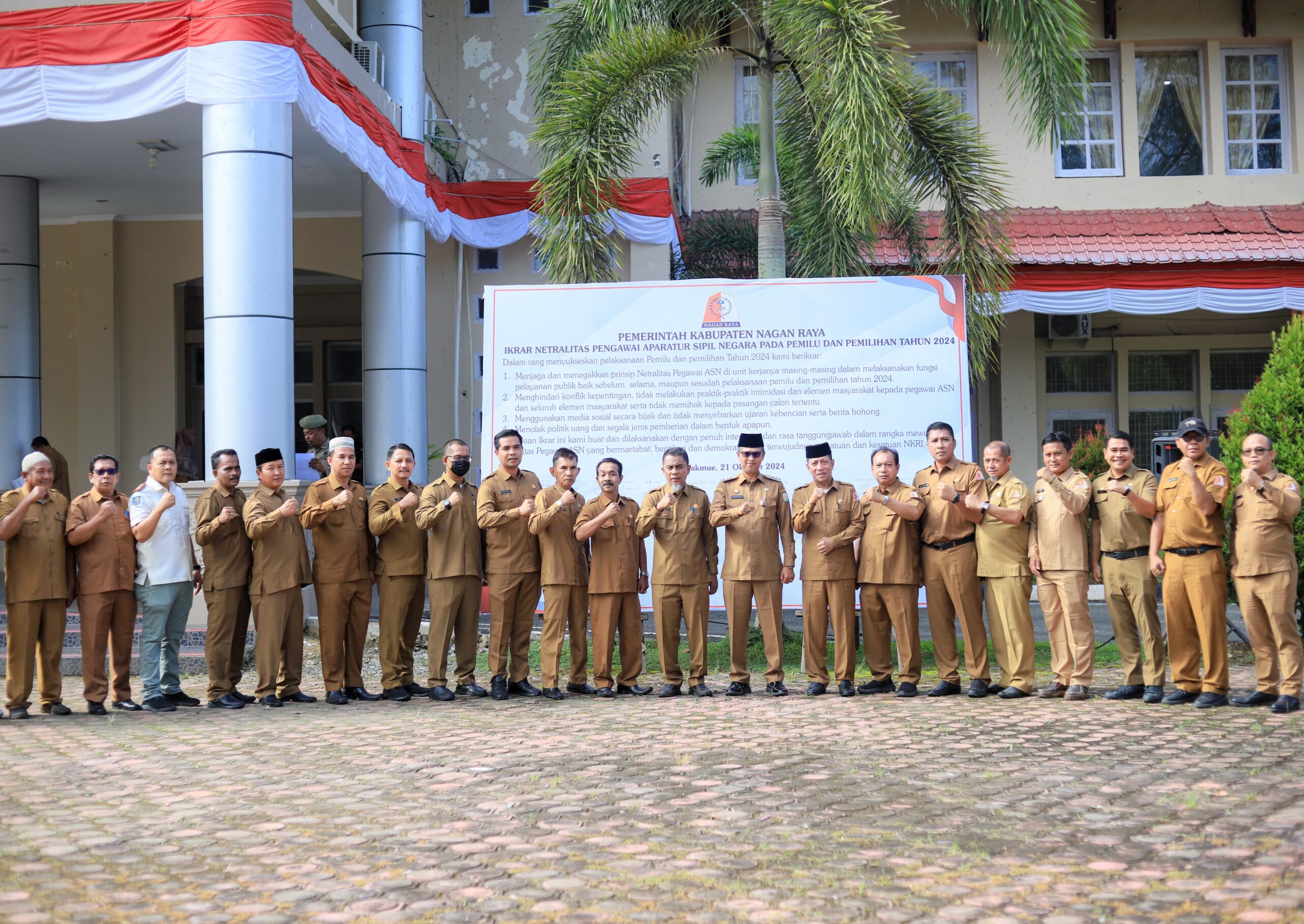 Pemerintah Kabupaten (Pemkab) Nagan Raya, Provinsi Aceh menggelar Apel Netralitas Aparatur Sipil Negara (ASN) dalam rangka Pemilihan Kepala Daerah dan Wakil Kepala Daerah Tahun 2024 (Pilkada) tahun 2024.
