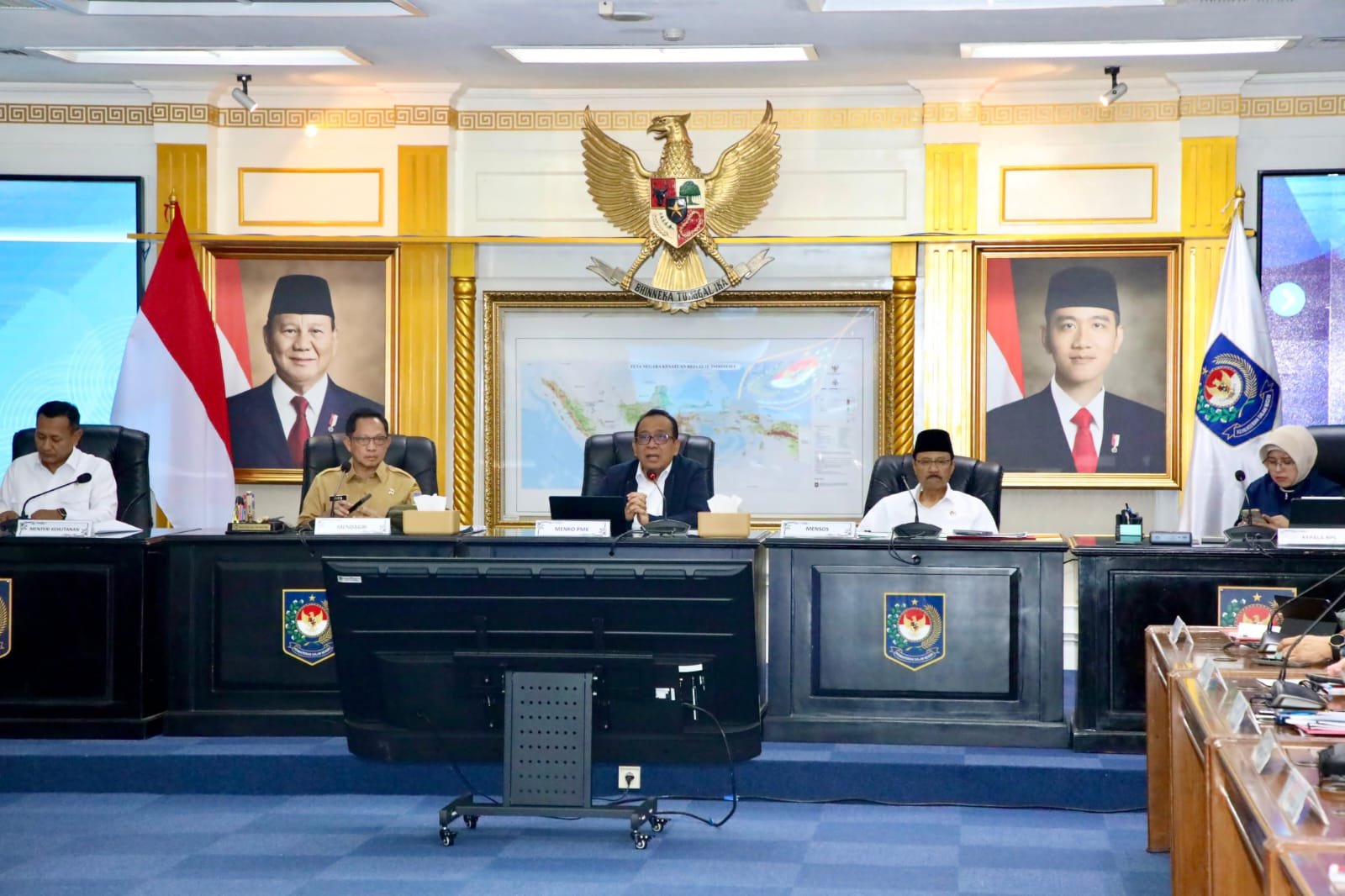 Rapat ini turut dihadiri oleh Menteri Koordinator Bidang Pembangunan Manusia dan Kebudayaan (Menko PMK) Pratikno, Menteri Sosial Saifullah Yusuf, Wakil Menteri Kehutanan Rohmat Marzuki, Kepala BNPB Suharyanto, Kepala Badan Pusat Statistik (BPS) Amalia Adininggar Widyasanti, Wakil Gubernur Aceh Fadhlullah, serta pejabat terkait lainnya.