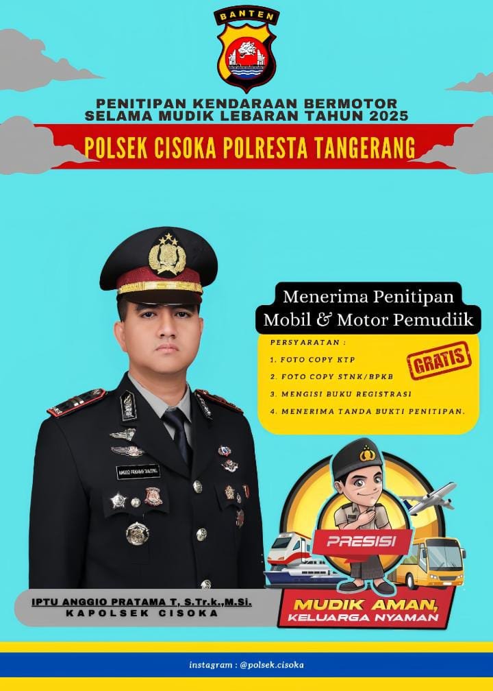 mandalanusantaranews.com Tangerang, – Layanan penitipan kendaraan baik Roda dua maupun Kendaraan roda empat yang kebetulan tidak dibawa mudik dan khawatir jadi incaran kriminalitas, silahkan titipkan di Polsek Cisoka Polresta Tangerang Polda Banten