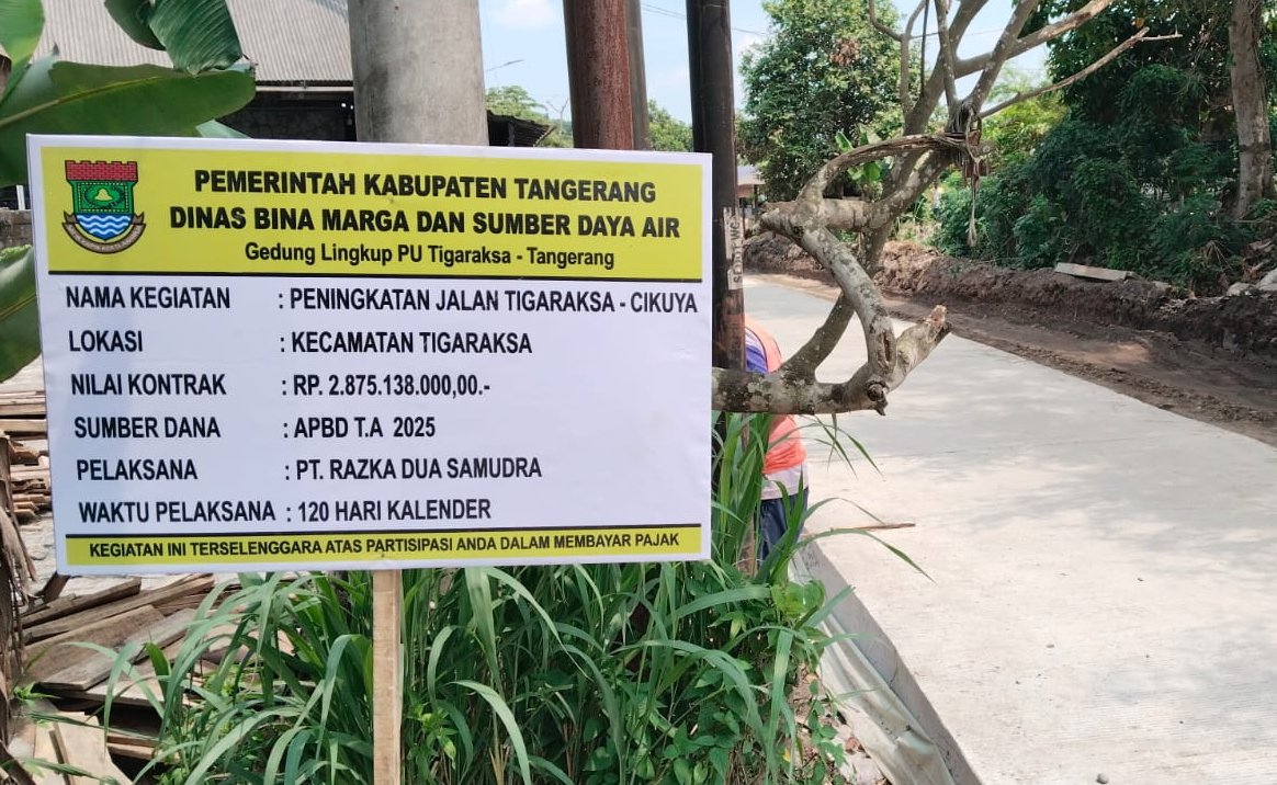 Mandala Nusantara News Tangerang, – Pemerintah kabupaten Tangerang melalui Dinas Bina Marga dan Sumber Daya Air (DBMSDA) kabupaten Tangerang melaksanakan pembangunan perbaikan jalan Tigaraksa-Cikuya yang di kerjakan oleh PT. Razka Dua Samudra mendapatkan apresiasi dari pengguna jalan, Selasa(6/5/2025).
