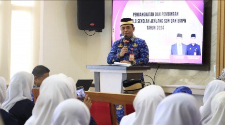 “Jalankan tugas dan amanah dengan sebaik-baiknya di tempat yang sudah ditugaskan. Hari ini kita telah melantik 64 orang yang sebelumnya sudah diusulkan, dengan rincian 54 orang menjadi Kepsek SDN dan 10 orang menjadi Kepsek SMPN,” tuturnya.