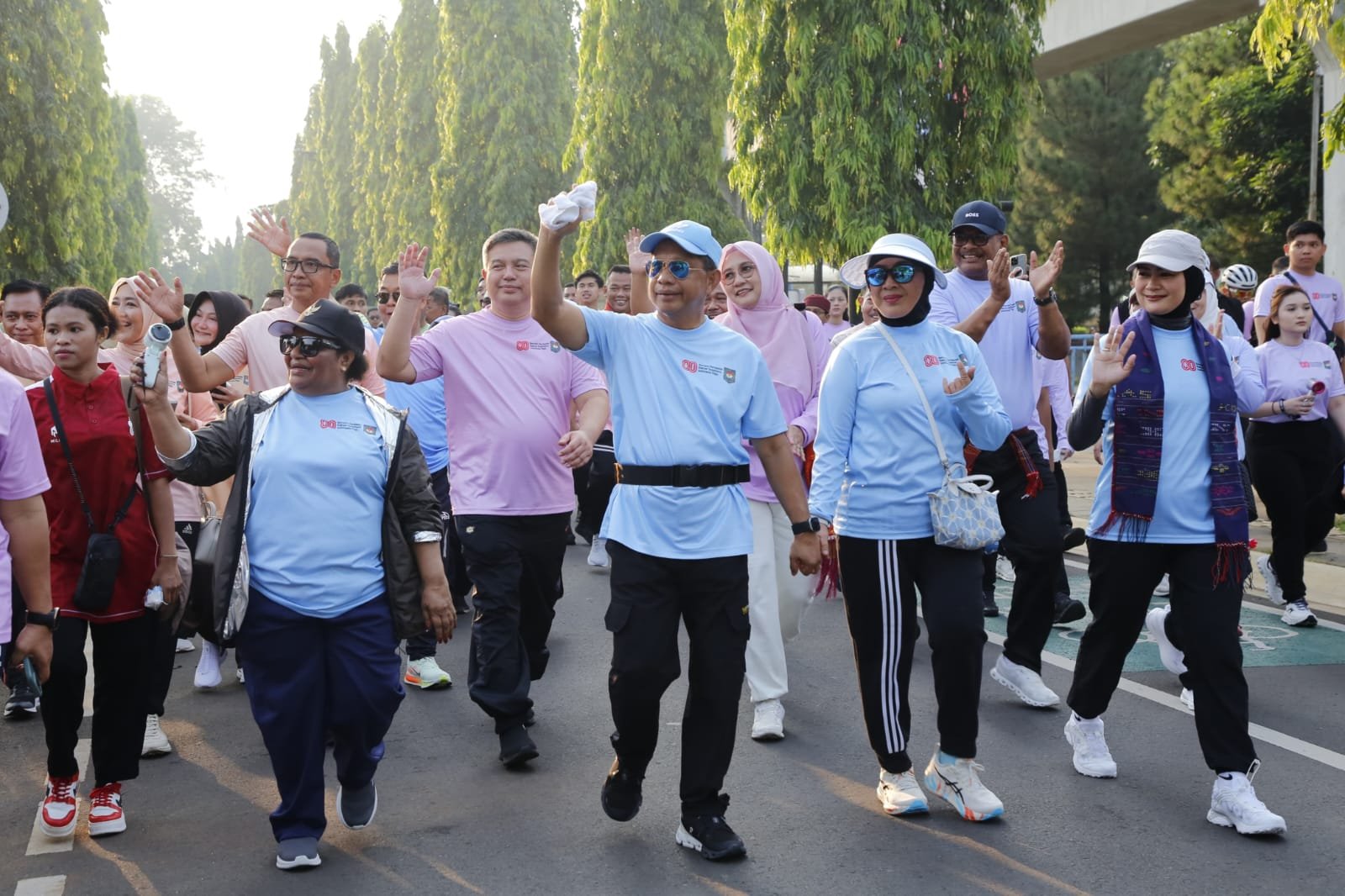 Para peserta tampak antusias mengikuti jalan sehat yang dibuka secara resmi oleh Menteri Dalam Negeri (Mendagri) Muhammad Tito Karnavian. Rangkaian acara turut dihadiri Wakil Menteri Dalam Negeri (Wamendagri) Ribka Haluk, Ketua Umum Tim Penggerak Pemberdayaan dan Kesejahteraan Keluarga (TP PKK) Tri Tito Karnavian, jajaran pejabat pimpinan tinggi madya, serta pejabat terkait lainnya di lingkungan Kemendagri.