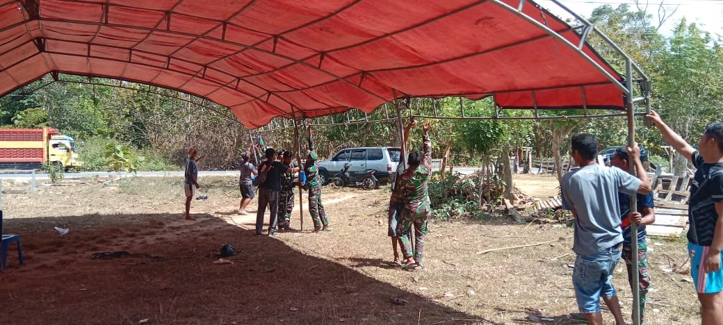 “Juga Kegiatan pemasangan tenda tersebut menunjukan rasa kebersamaan dan kekompakan antara warga dengan anggota Satgas TMMD ke-123, kita ingin TNI selalu ada di hati rakyat, dan senantiasa bekerjasama dengan rakyat,” katanya