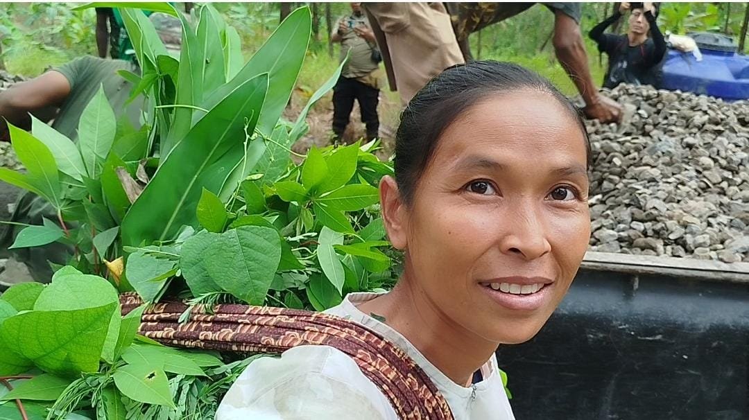 Bagi Ratini yang kesehariannya melintas dengan membawa rumput dan daunan untuk kambing dan warga lainnya, pembangunan jalan ini bukan sekadar proyek infrastruktur biasa. Selama ini, akses utama menuju lahan pertanian dan pemukiman mereka sering kali berubah menjadi “kubangan lumpur” saat musim hujan tiba, yang sangat menghambat aktivitas ekonomi dan pendidikan anak-anak.