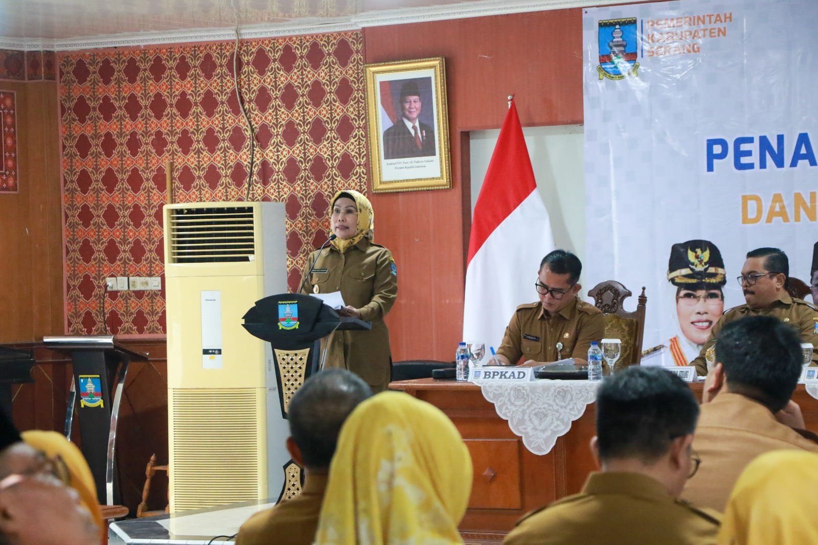 Turut hadir Penjabat Sekretaris Daerah (Pj Sekda) Kabupaten Serang, Rudy Suhartanto, Asda 1 Haryadi, Asda 2 Febrianto, Asda 3 Ida Nuraida, Kepala BPKAD Sarudin, para kepala OPD di dan perwakilan camat.