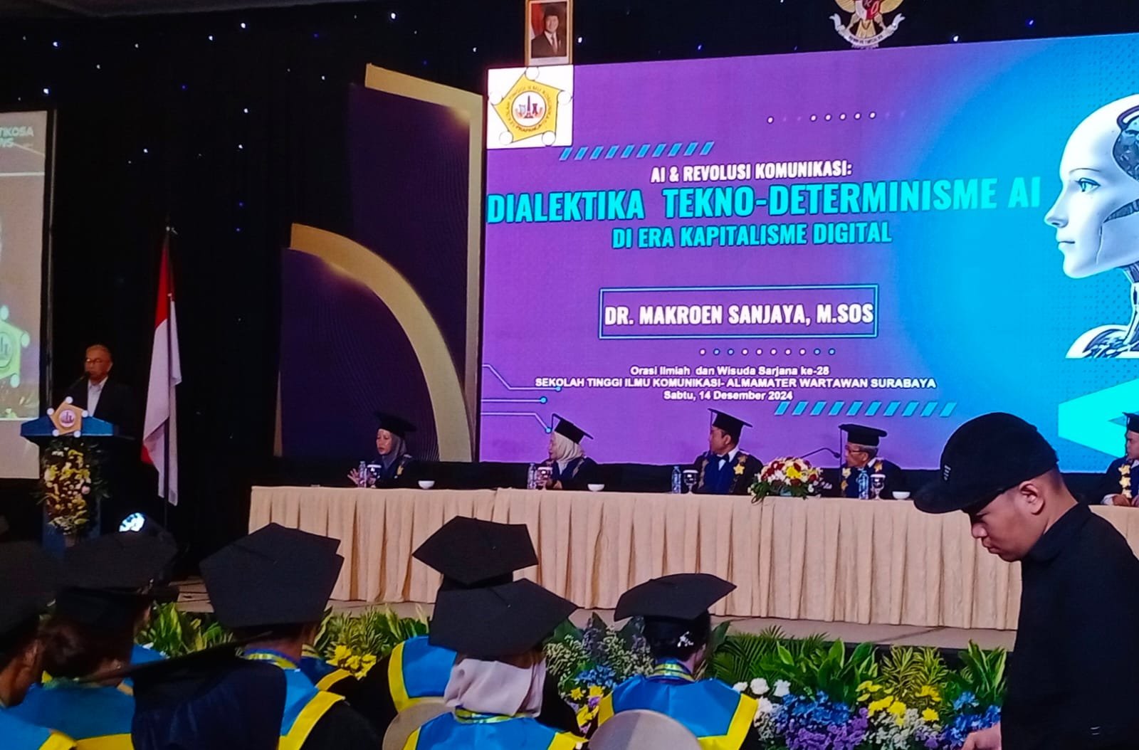 Sesuai tema Wisuda XVIII tahun 2024, yakni AI dan Revolusi Komunikasi dalam Menghadapi Tantangan di Era Digital, Dr Makroen Sanjaya, M.Sos memberikan orasi ilmiah yang sangat menarik mengenai perkembangan AI. Makroen Sanjaya juga merupakan alumni Stikosa AWS angkatan tahun 1985. Setelah lulus, ia memulai karir sebagai wartawan di majalah Fakta pada tahun 1986, berlanjut ke harian Surya di Surabaya. Sepuluh tahun kemudian, mulai berkarir di dunia televisi sebagai reporter, antara lain di SCTV, metro TV dan Rajawali TV, sambil kuliah pasca sarjana. Kini ia dosen Universitas Muhammadiyah Jakarta dan Direktur Utama TV Muhammadiyah Jakarta.