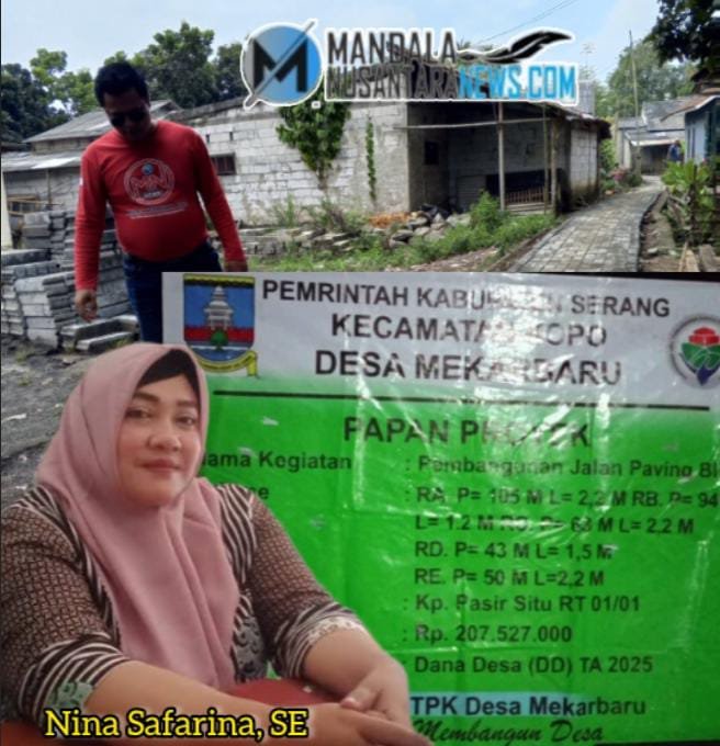 Mandala Nusantara News – Serang | Dengan terbit nya pemberitaan pada portal berita Media Mandala Nusantara News yang mengangkat dugaan “Proyek Paping Block Desa Mekar Baru Di duga Minim Pengawasan serta Upah Pekerja Tak Layak” edisi (22/5/2025) TPK Desa mekar baru (Yusup – Red) Enggan berkomentar dirinya mengarahkan agar tim Media Mandala Nusantara News bertemu langsung dengan Kepala Desa.