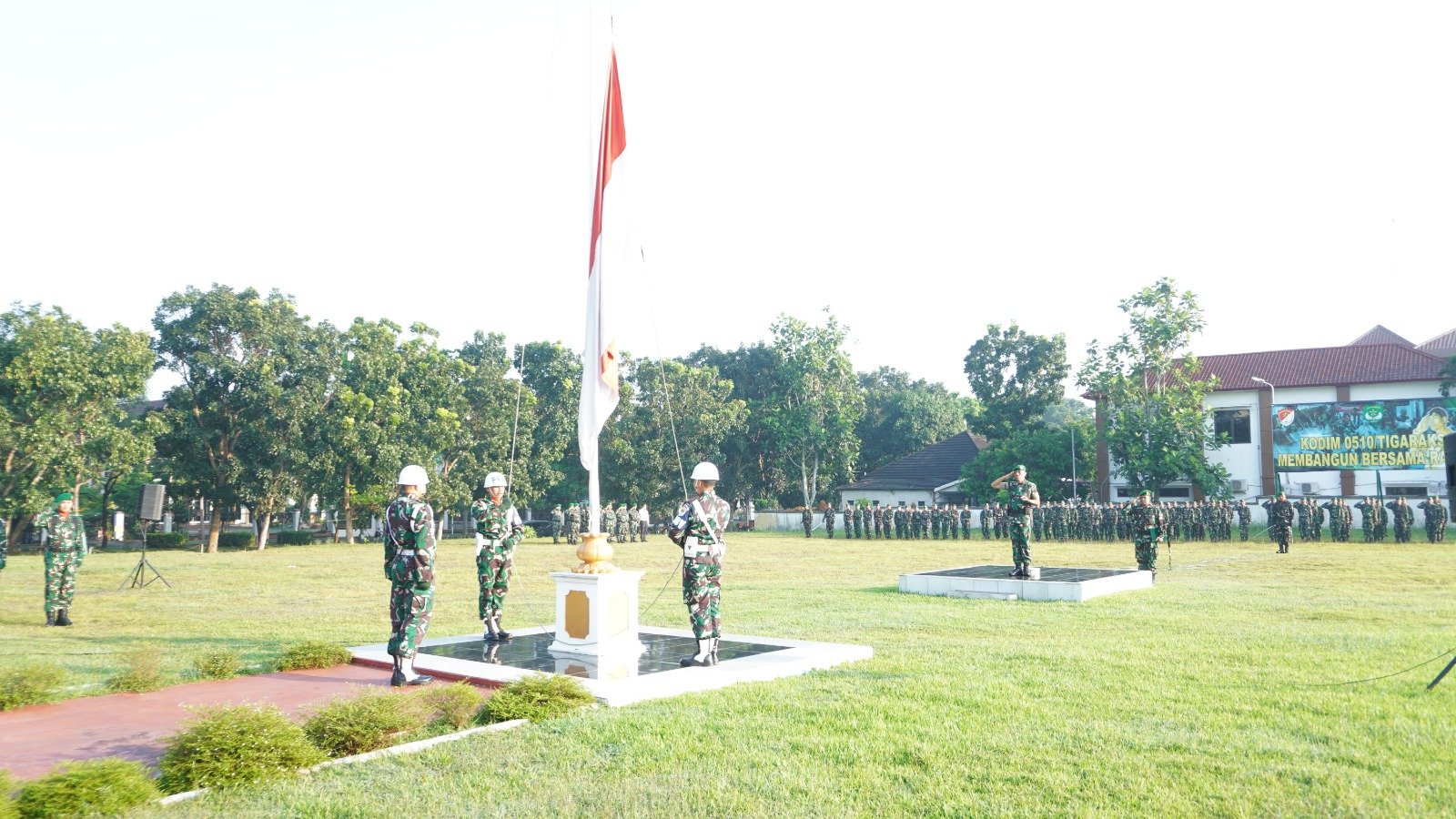 Mandala Nusantara News Kodam Jaya, Tigaraksa – Upacara bendera kembali digelar di Lapangan Makodim 0510/Trs, Kabupaten Tangerang, Senin (5/05/2025). Sekitar 150 personel mengikuti kegiatan yang dipimpin langsung oleh Dandim 0510/Trs, Letkol Inf Yudho Setyono S.H. Upacara berlangsung dari pukul 07.00 hingga 07.44 WIB dengan situasi yang terpantau kondusif.